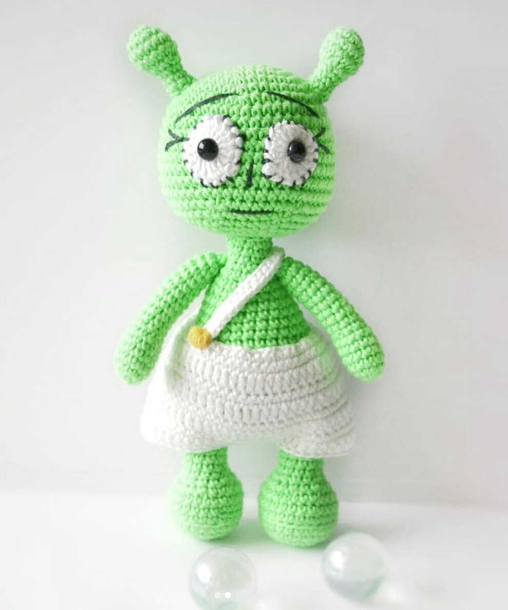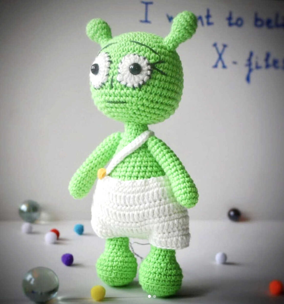 One of the AMIGURUMI WORLDS free crochet patterns we will share today is AMIGURUMI WORLDS alien designed and photos by Maria (@amirumary). Learn how to crochet this cute alien using a free amigurumi pattern. Thanks to Maria for this cute alien.