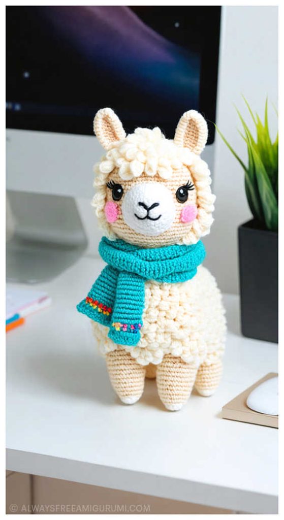 Rated at a Skill Level: Intermediate – Experienced, this alpaca pattern is perfect for crafters ready to explore mixed-texture yarns and create a polished, professional look. Many thanks to Durable Yarn for sharing this beautiful design. And don’t forget—at the end of the pattern, you’ll find a selection of wonderful amigurumi alpaca ideas to inspire your next handmade creations.