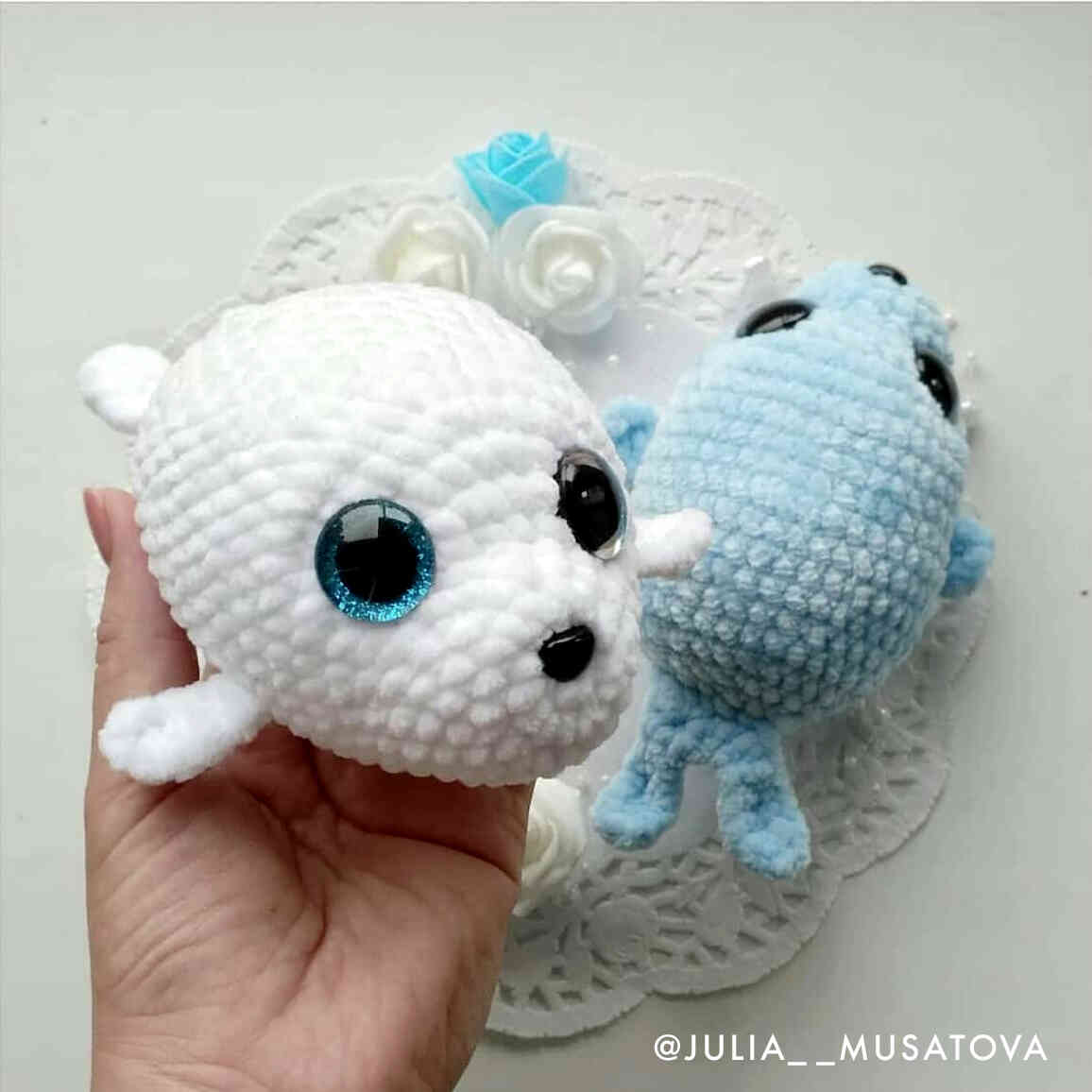One of the AMIGURUMI WORLDS free crochet patterns we will share today is AMIGURUMI WORLDS baby seal designed and photos by Julia Musatova. Learn how to crochet this cute seal using a free amigurumi pattern. The finished amigurumi plush baby seal is about 20 cm (7.8”) long. Thanks to Julia Musatova (@julia__musatova) for this cute seal.
