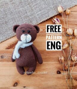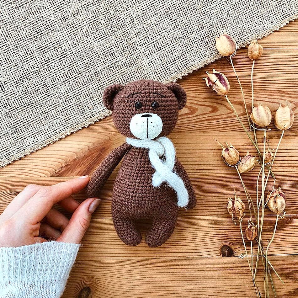 One of the free AMIGURUMI WORLDS crochet patterns we will share today is the AMIGURUMI WORLDS Bruno the bear, whose photos and design belong to @bumbee_crochet. You can learn how to crochet these bear using the free amigurumi pattern. Thanks to dear Kristina for this cute bear.