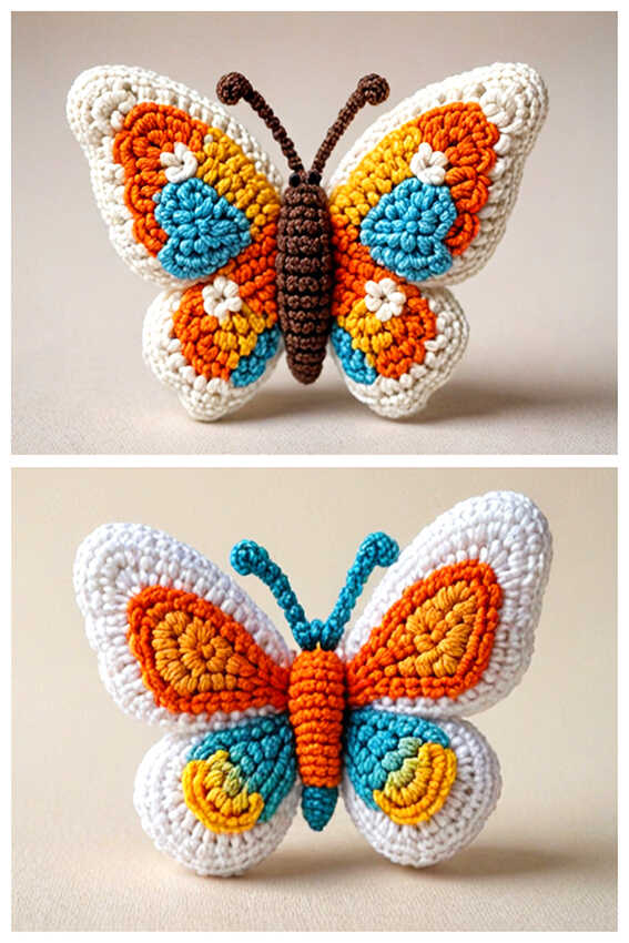 One of the free AMIGURUMI WORLDS crochet patterns we will share today is the AMIGURUMI WORLDS butterfly, whose photos and design belong to Sasha Stemakh (YouTube). You can learn how to crochet these butterfly using the free amigurumi pattern. Thanks to dear Sasha Stemakh for this cute color wings butterfly.