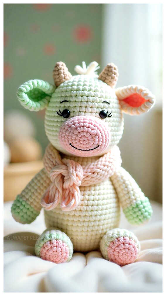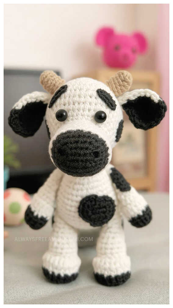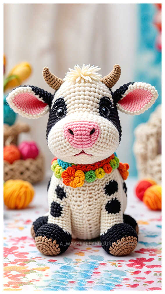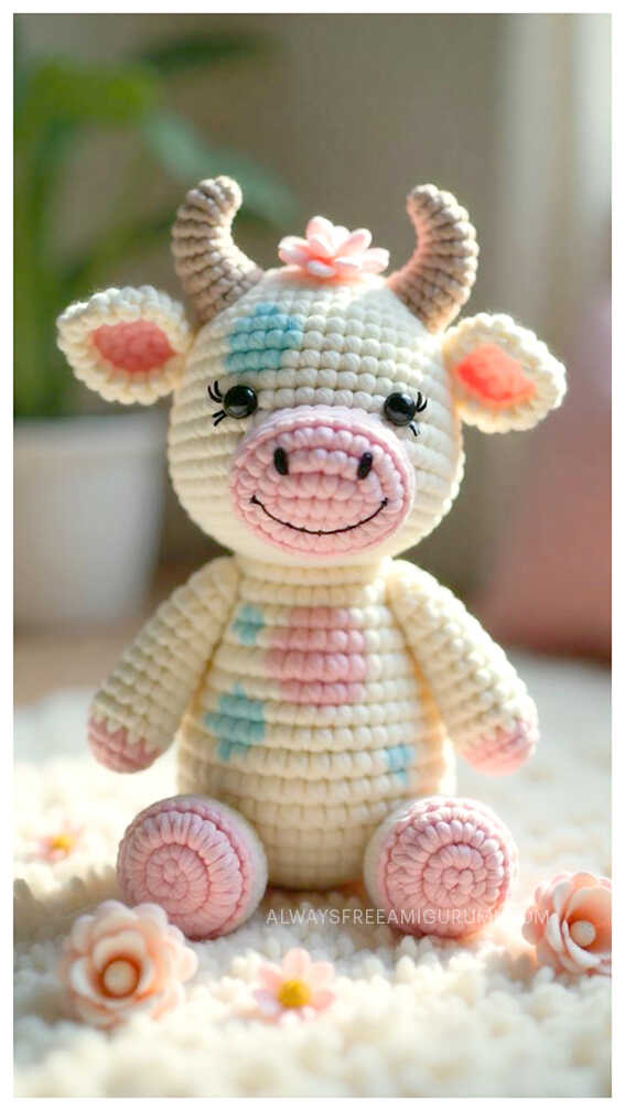 One of the free AMIGURUMI WORLDS crochet patterns we will share today is the AMIGURUMI WORLDS cow, whose photos and design belong to Svetlana Efremova. You can learn how to crochet these cow using the free amigurumi pattern. Thanks to dear Svetlana Efremova for this cute cow.