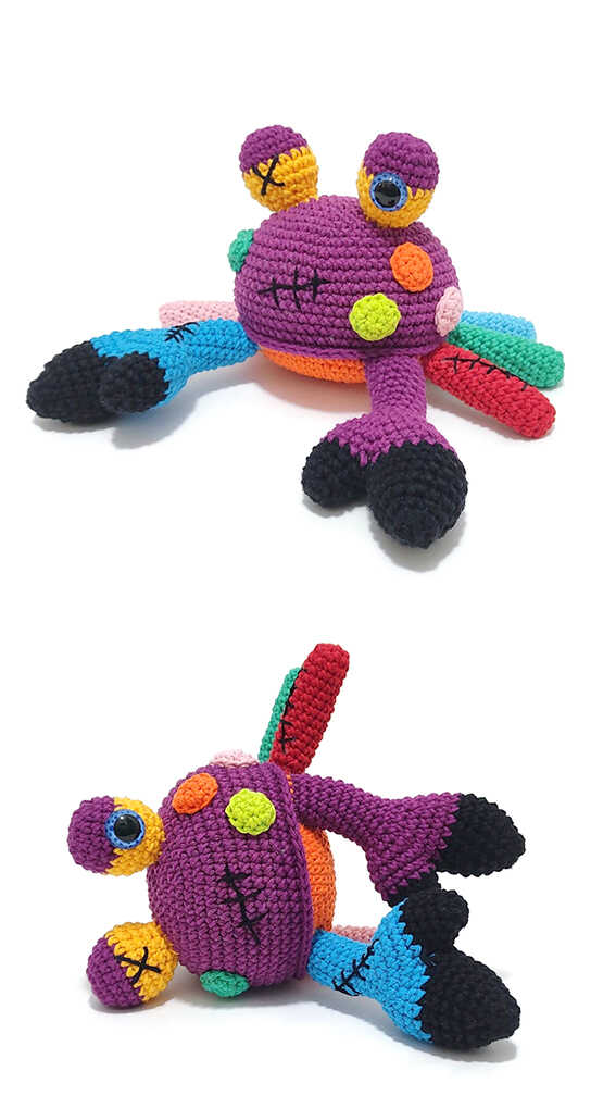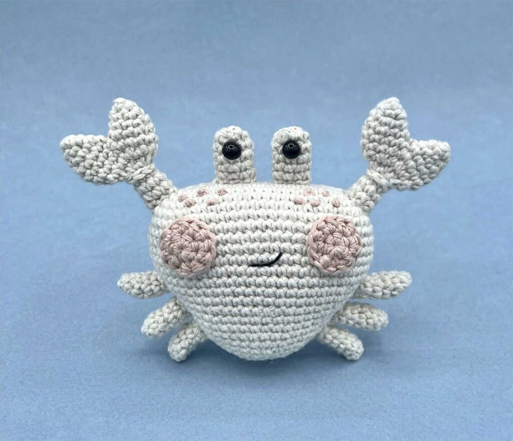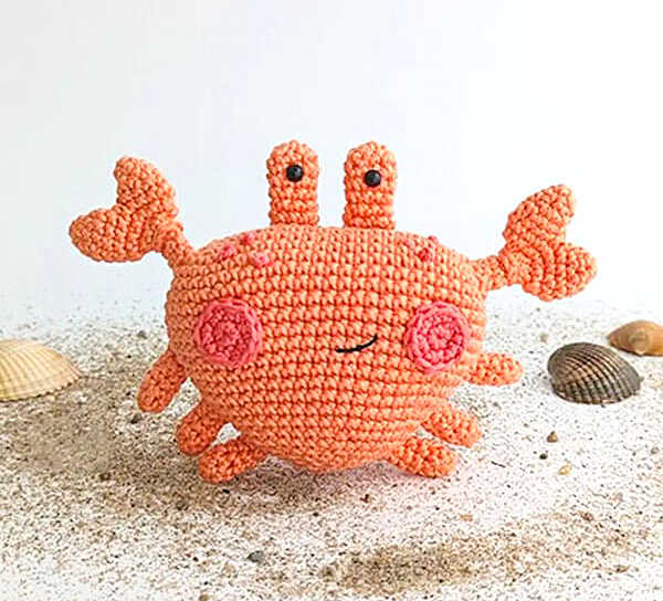 We make the final touch of the crab with its cheeks. If you prefer pink yarn, it will be more cute.