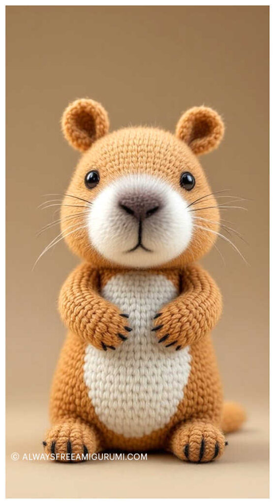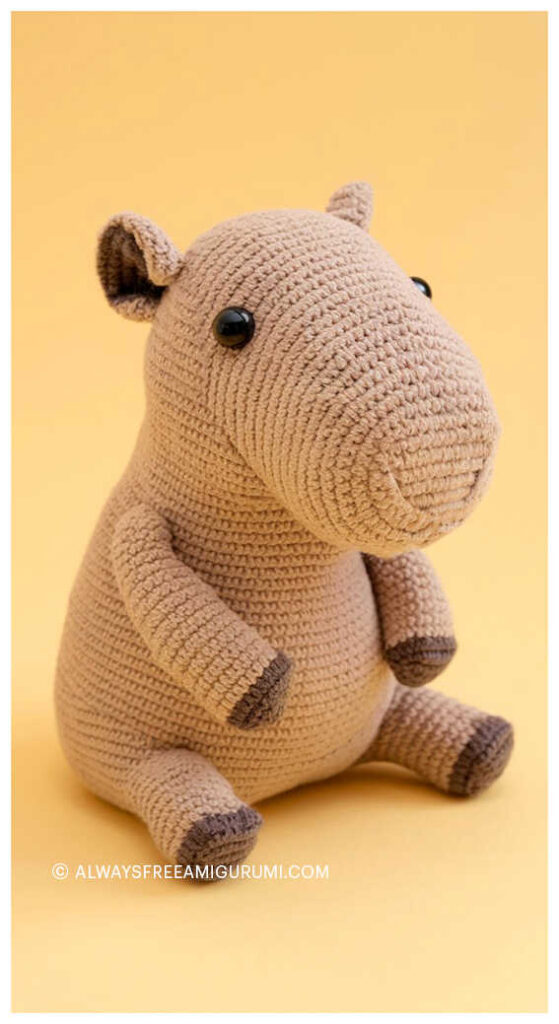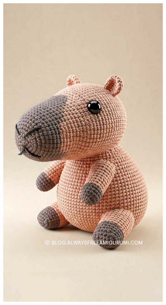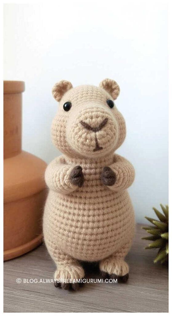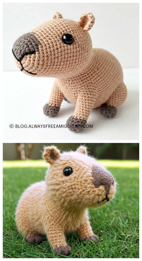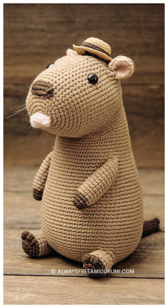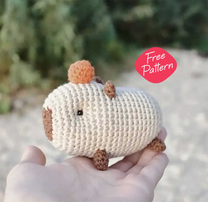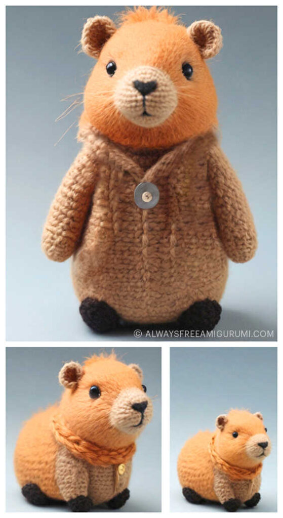 One of the free AMIGURUMI WORLDS crochet patterns we will share today is the AMIGURUMI WORLDS cute capybara whose photos and design belong to Knitted Comfort. You can learn how to crochet this capybara using the free amigurumi pattern. Thanks to Knitted Comfort for this cute capybara.