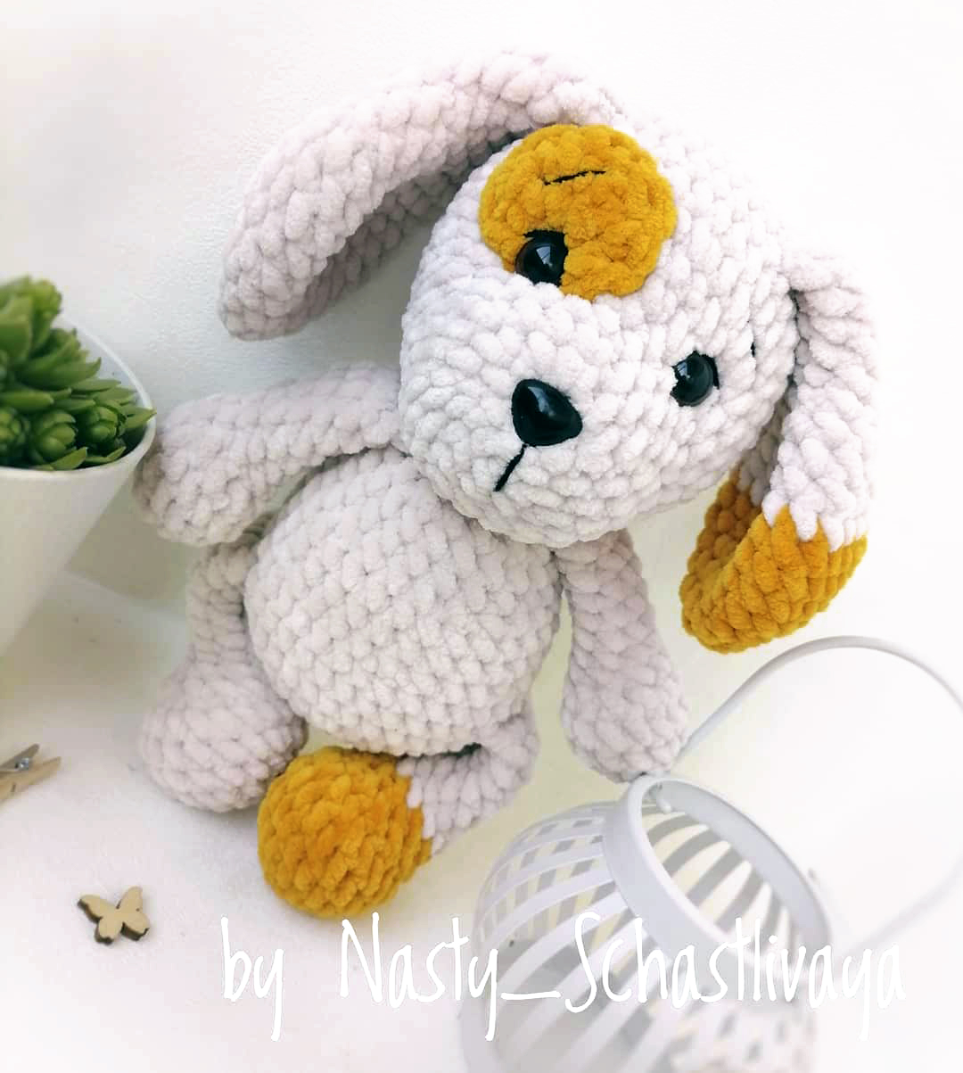 One of the free AMIGURUMI WORLDS crochet patterns we will share today is the AMIGURUMI WORLDS dog, whose photos and design belong to Nasty Schastlivaya. You can learn how to crochet these dog using the free amigurumi pattern. Thanks to Nasty Schastlivaya (@nasty_schastlivaya_) for this cute dog. Finished toy measures approximately 25 cm (9.8”) tall.