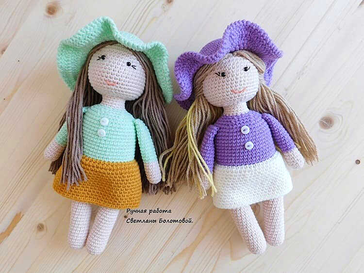 One of the AMIGURUMI WORLDS free crochet patterns we will share today is AMIGURUMI WORLDS doll designed and photos by Svetlana Bolotova. Learn how to crochet this doll using a free amigurumi pattern. Thanks to Svetlana Bolotova (@svetlana_kids_toys) for this cute doll.