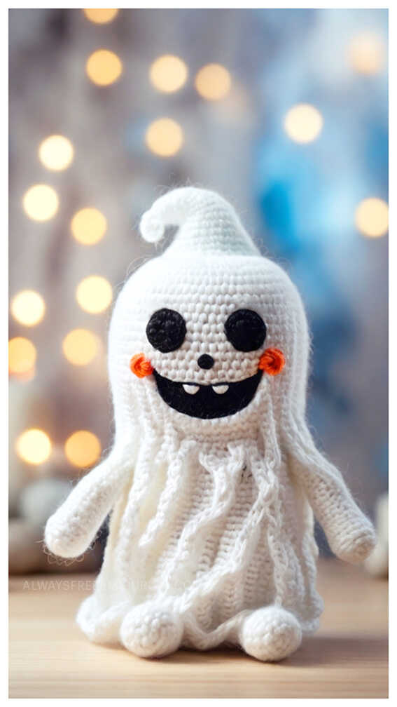 One of the free AMIGURUMI WORLDS crochet patterns we will share today is the AMIGURUMI WORLDS ghost with witch hat, whose photos and design belong to Lauren Wigfield Barrett. You can learn how to crochet these ghost using the free amigurumi pattern. Thanks to dear Lauren Wigfield Barrett for this cute ghost.