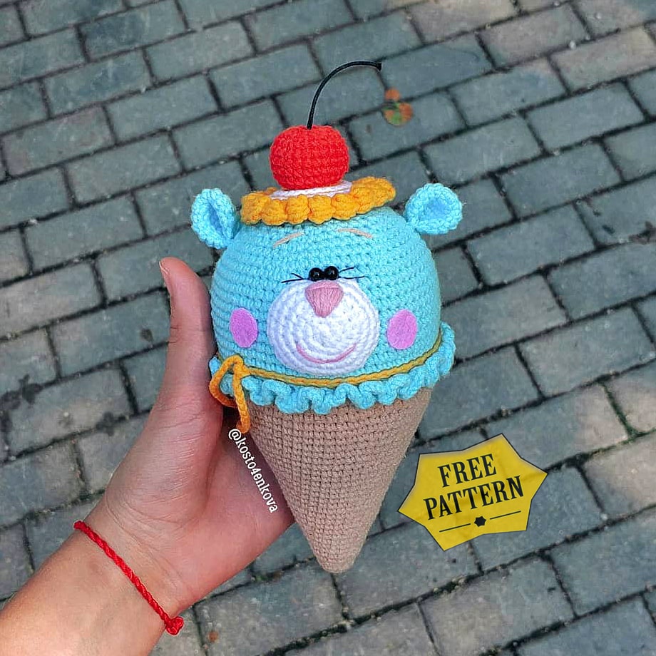 One of the free AMIGURUMI WORLDS crochet patterns we will share today is the AMIGURUMI WORLDS ice cream bear, whose photos and design belong to Tatyana Kostochenkova. You can learn how to crochet these ice cream using the free amigurumi pattern. Thanks to Tatyana Kostochenkova (@kosto4enkova) for this cute ice cream bear.