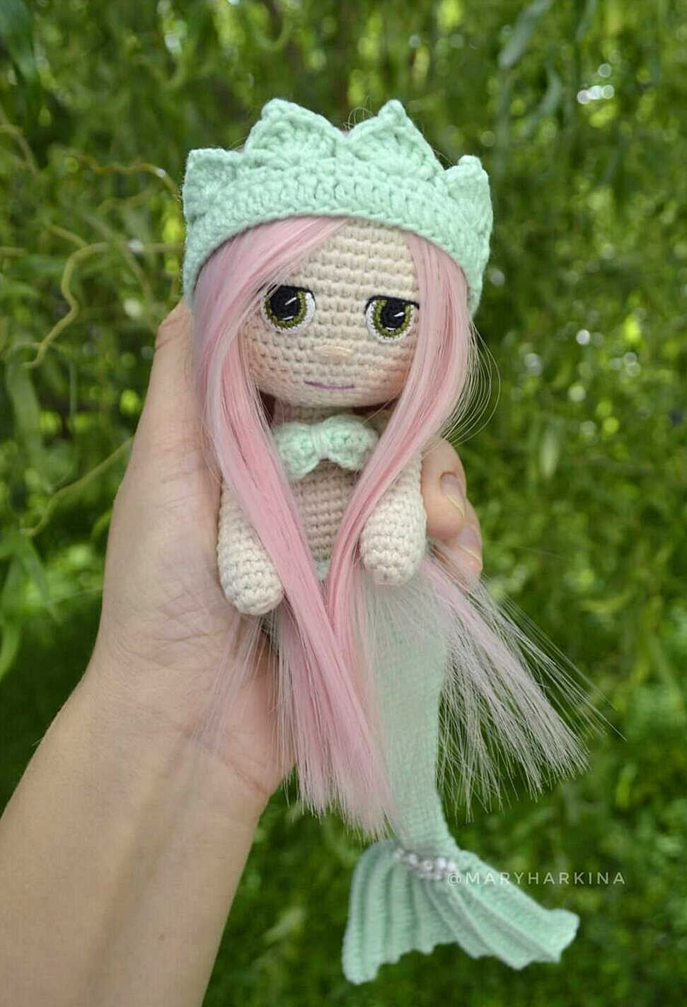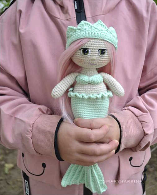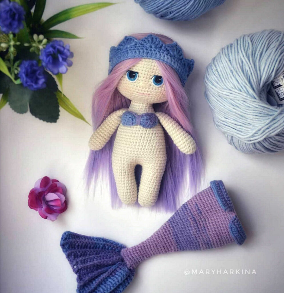 One of the free AMIGURUMI WORLDS crochet patterns we will share today is the AMIGURUMI WORLDS mermaid, whose photos and design belong to Mary Harkina. You can learn how to crochet these mermaid using the free amigurumi pattern. Thanks to Mary Harkina (@marytoysandpattern) for this cute mermaid.