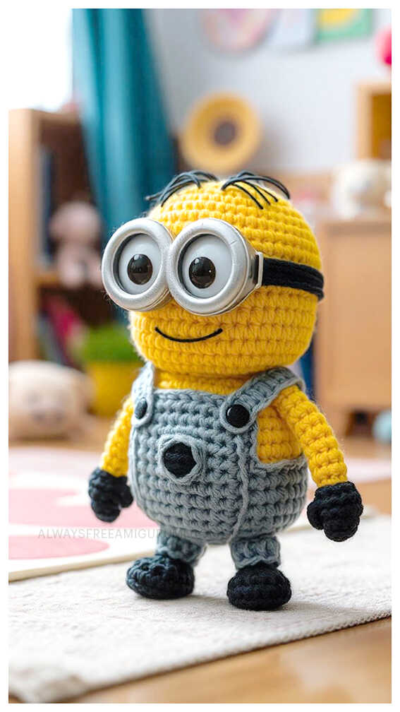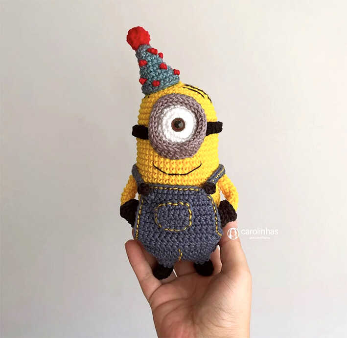 One of the free AMIGURUMI WORLDS crochet patterns we will share today is the AMIGURUMI WORLDS Stuart the Minion, whose photos and design belong to Carolinhas. You can learn how to crochet these Minion using the free amigurumi pattern. You can find more details about the pattern and the party hat pattern on the author’s Instagram profile. Thanks to dear Carol Palma for this cute minion.