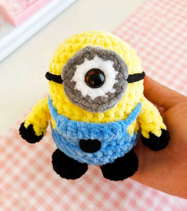 That’s it, the plush cute minion amigurumi toy is ready. I hope you had a good time making the toy.