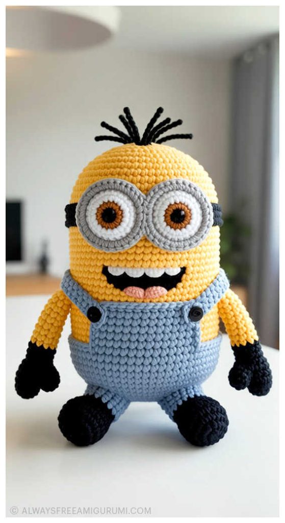 Before you begin, gather your 4.5 mm hook, stitch marker, polyfil stuffing, scissors, and a bit of black felt for the finishing touches. Take your time and enjoy the creative process — as the designer reminds us, patience always pays off in amigurumi! Whether you’re crafting your very first crochet toy or expanding your handmade collection, this pattern is sure to make you smile from the first stitch to the last. A big thank-you to Cute Stuff Crochet for this adorable free pattern, and be sure to check the end of the post for more inspiring amigurumi Minion ideas to try next!