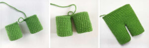 R45:Put on the pants and knit the pants and body together in green 48sc (48)