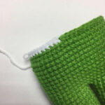 Fold in half and knit both sides together 5sc.