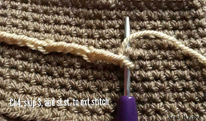 • *Ch.4 , skip 3 sts, sl.st to nxt st.* repeat all around the body, Sl.st to 1 st st. Fasten off. Weave in ends.