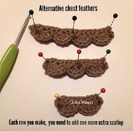 Designer’s Note: “Before you start, this pattern requires you to be able to do crocodile stitch. HOWEVER, I have also included an alternative method for the chest feathers. So ! Lets get started !!”