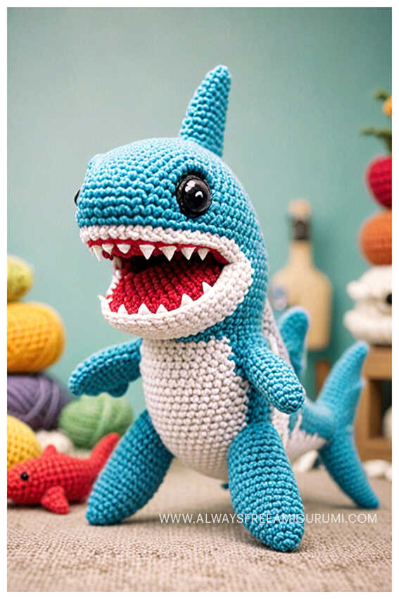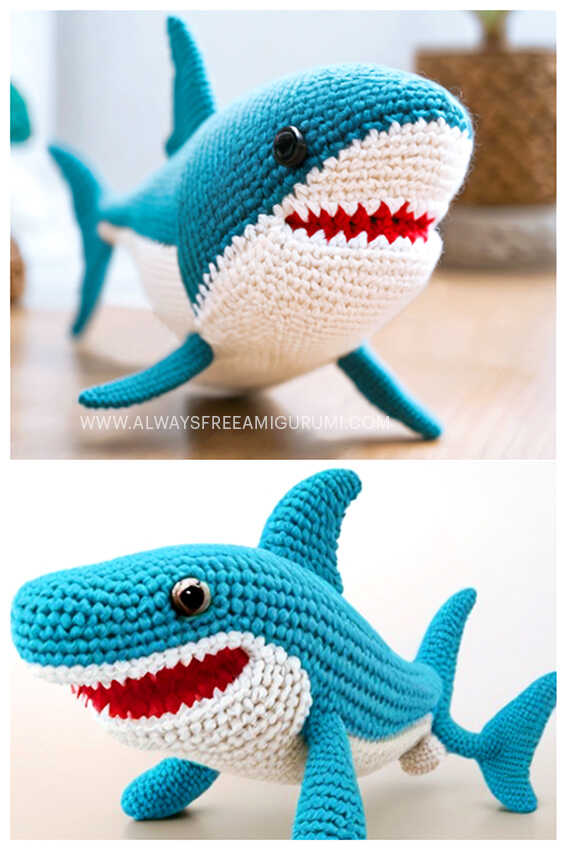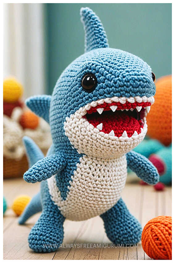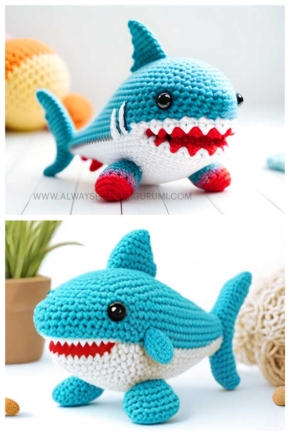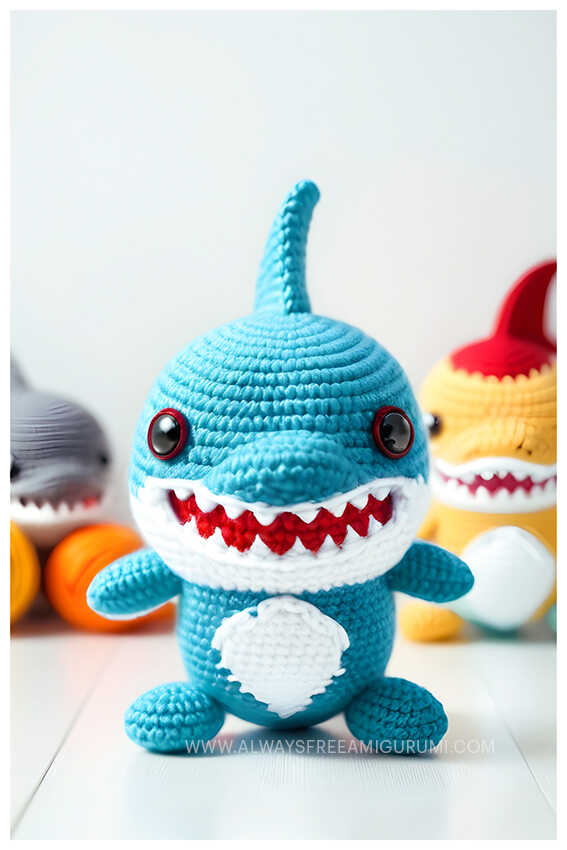 Congratulations, you have completed the Baby Shark amigurumi pattern.