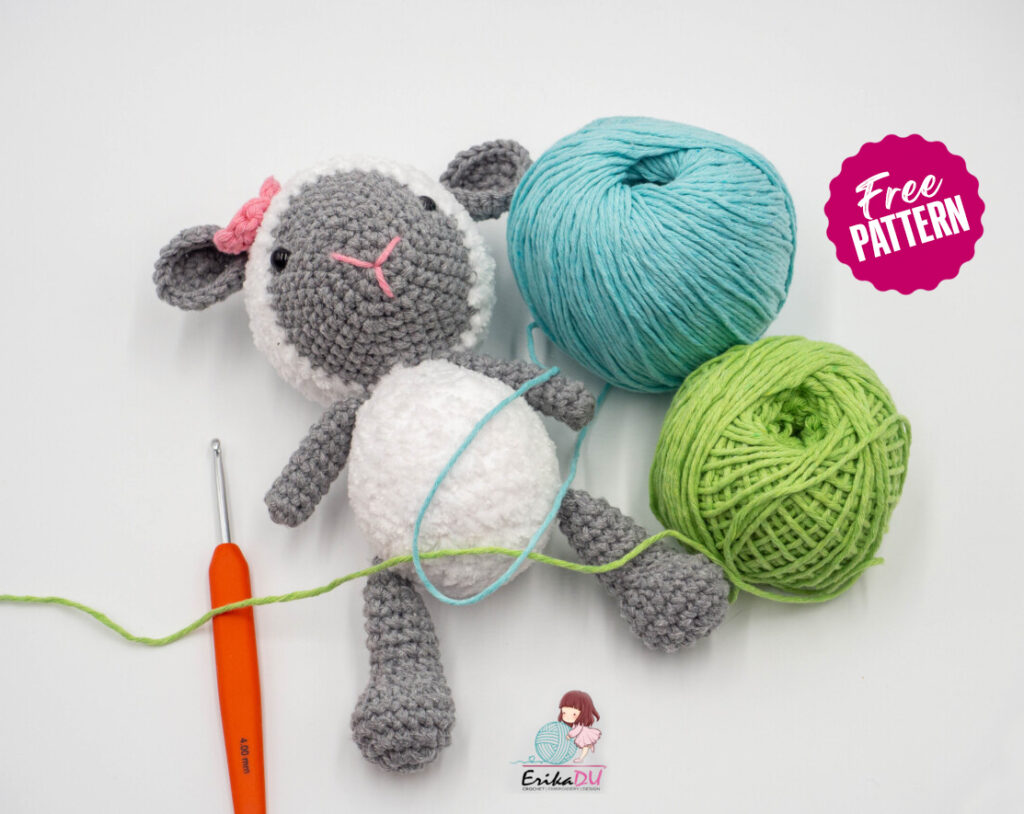 One of the free AMIGURUMI WORLDS crochet patterns we will share today is the AMIGURUMI WORLDS sheep, whose photos and design belong to Erika Du. You can learn how to crochet these monkey using the free amigurumi pattern. Thanks to Erika Du for this cute sheep.