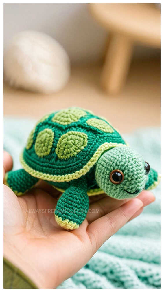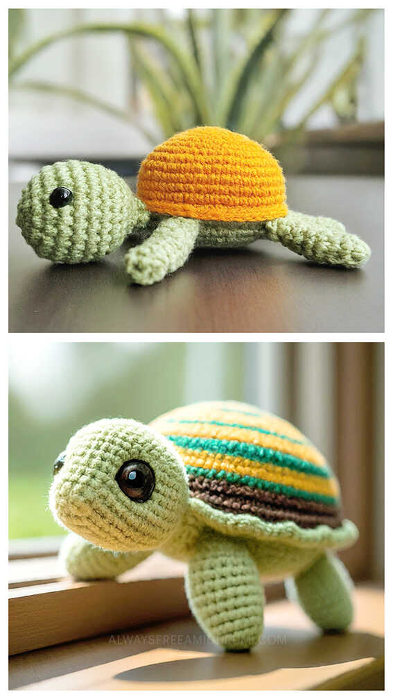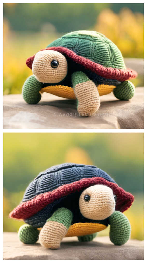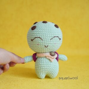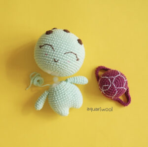 One of the free AMIGURUMI WORLDS crochet patterns we will share today is the AMIGURUMI WORLDS turtle, whose photos and design belong to Aquariwool. You can learn how to crochet these turtle using the free amigurumi pattern. Thanks to Aquariwool (@aquariwool) for this cute turtle.