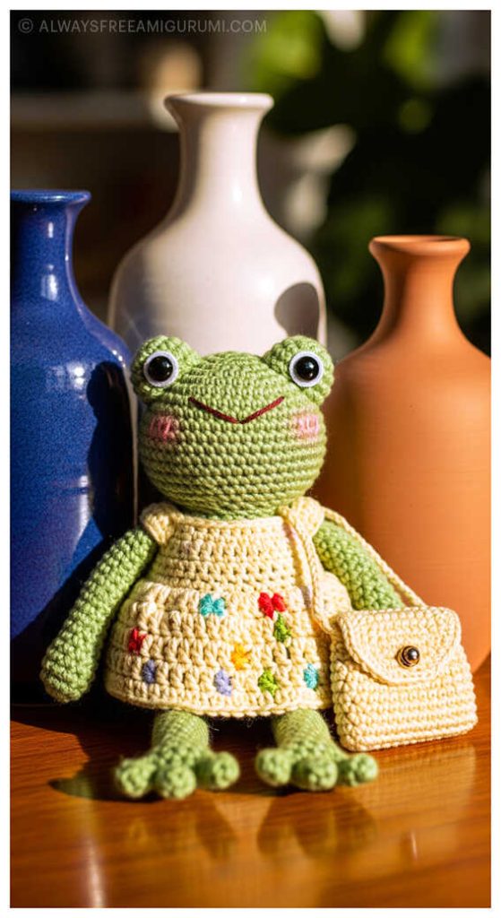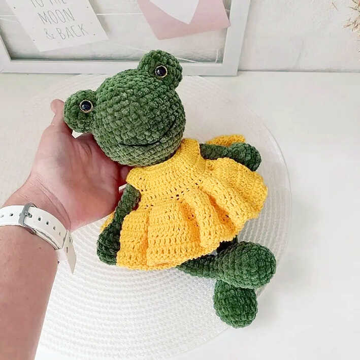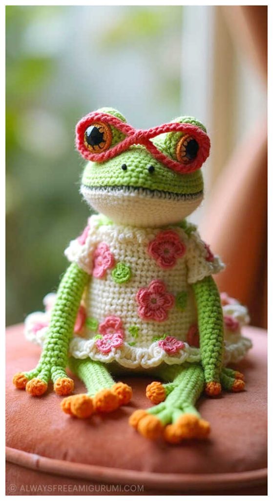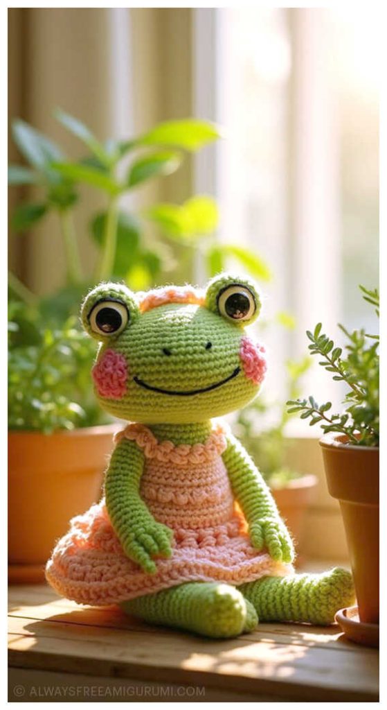 A big thank you to Ekaterina Kamneva for sharing this delightful free pattern with the crochet community. The tutorial also includes instructions for the frog’s pretty little dress, worked with YarnArt Jeans and a 2.0 mm hook, completed with two cute 15 mm buttons. Whether you’re creating it as a gift or adding it to your handmade collection, this frog is sure to melt hearts. At the end of the pattern, you’ll also find a gallery of inspiring and creative amigurumi frog examples to spark even more ideas for your next project.