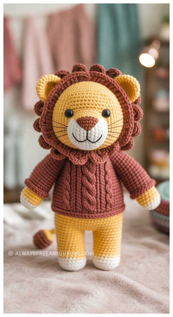 Whether you’re a beginner looking for a fun project or an experienced crocheter seeking your next cute creation, this pattern is both enjoyable and rewarding to follow. Using basic stitches and simple techniques, you’ll bring this lovable lion to life in no time.