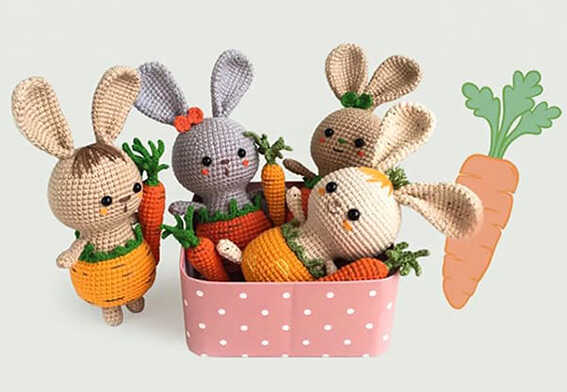 One of the free AMIGURUMI WORLDS crochet patterns we will share today is the AMIGURUMI WORLDS bunny in carrot pants, whose photos and design belong to Dace Rasa. You can learn how to crochet these bunny using the free amigurumi pattern. Thanks to dear Dace Rasa for this cute bunny.