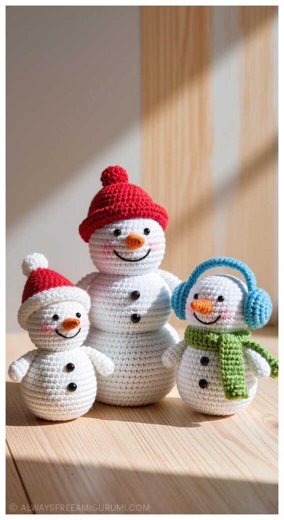 Designed with warmth and creativity by Amanda Yamamoto, this snowman pattern is not only a fun craft but also a perfect handmade gift idea for winter and Christmas. Each step is clearly explained, making it easy to follow even for beginners. By the end of the pattern, you’ll have a soft, cuddly snowman ready to melt hearts wherever he goes. And don’t miss the end of the tutorial—there you’ll find more wonderful amigurumi snowman ideas to inspire your next crochet creation!