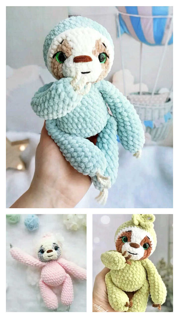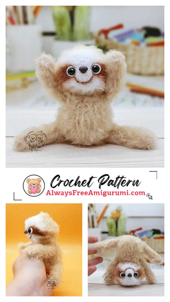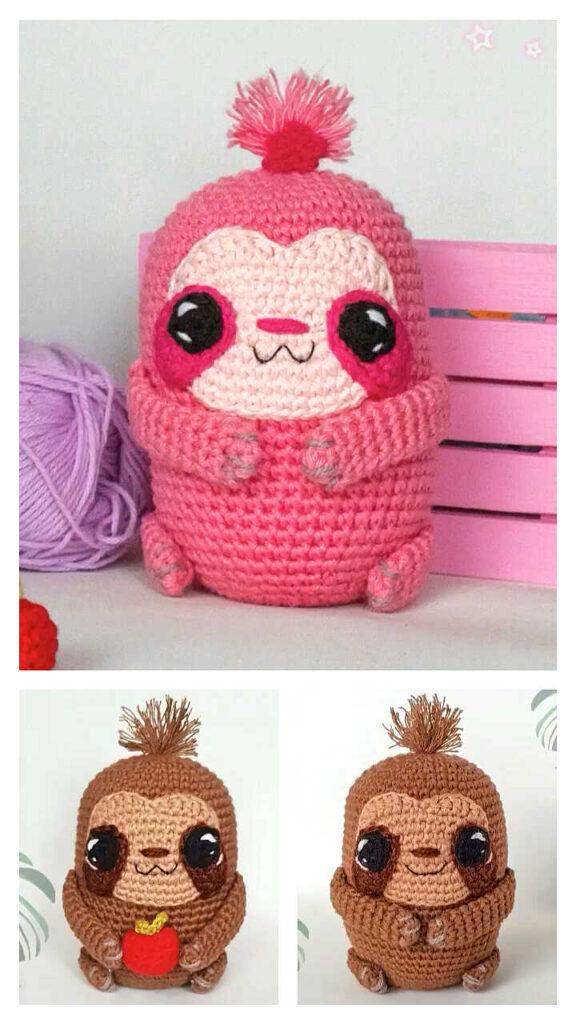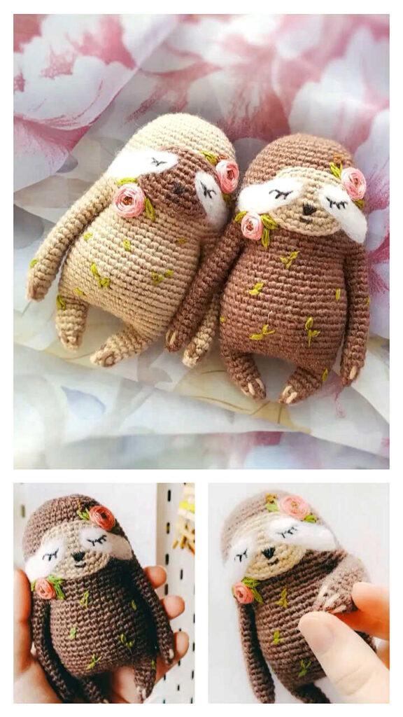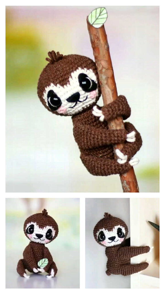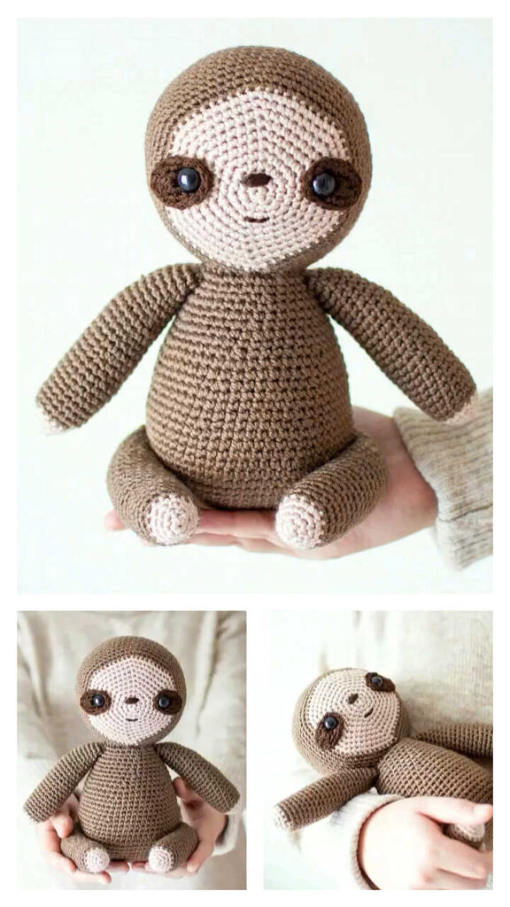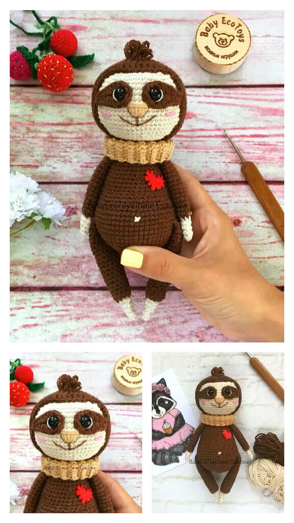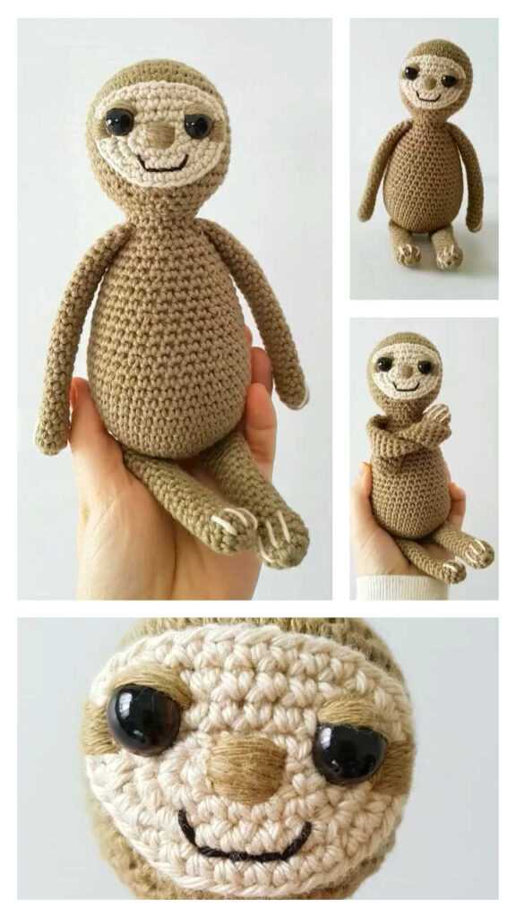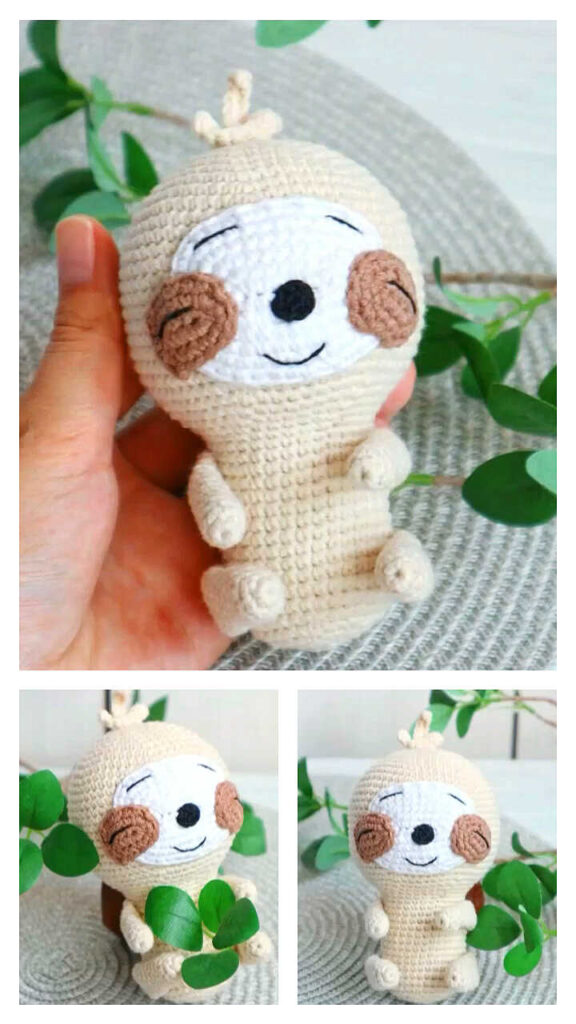 One of the free AMIGURUMI WORLDS crochet patterns we will share today is the AMIGURUMI WORLDS little sloth, whose photos and design belong to Lucy Rozonova. You can learn how to crochet these sloth using the free amigurumi pattern. Thanks to Lucy Rozonova (@lucy_rose_toys) for this cute sloth.