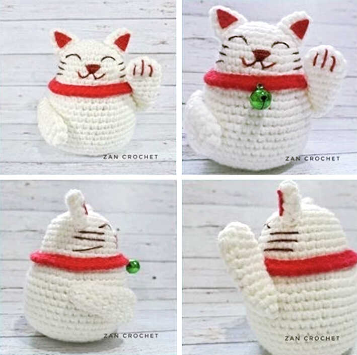 One of the free AMIGURUMI WORLDS crochet patterns we will share today is the AMIGURUMI WORLDS Maneki Neko Lucky Cat, whose photos and design belong to Zan Crochet. You can learn how to crochet these cat using the free amigurumi pattern. Thanks to dear Zan Merry for this cute cat.