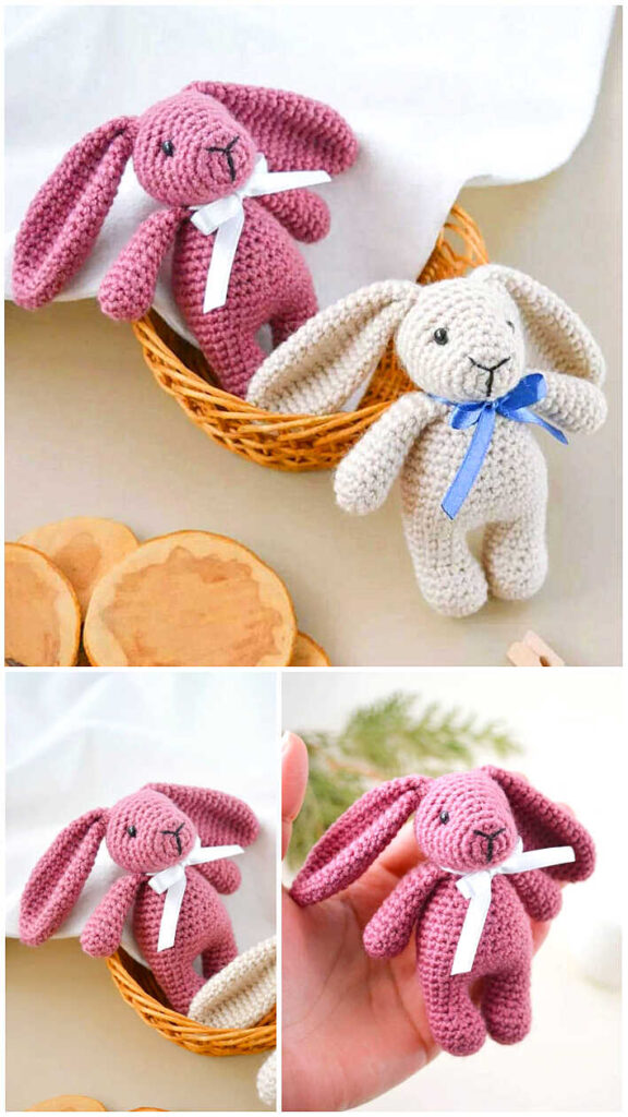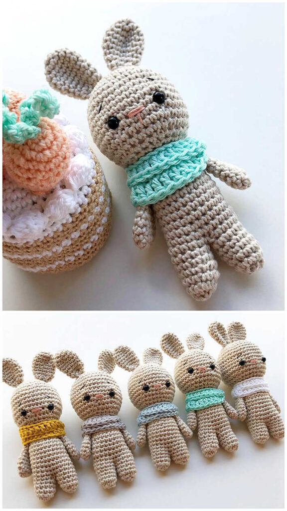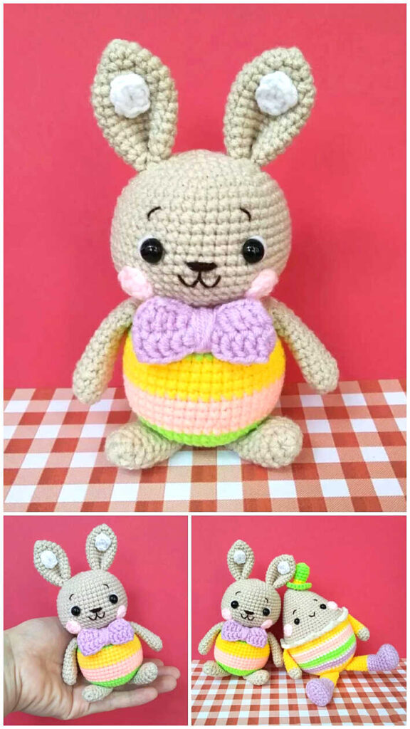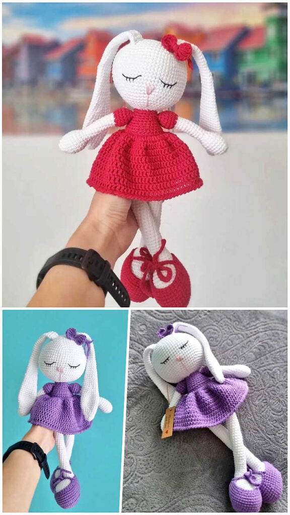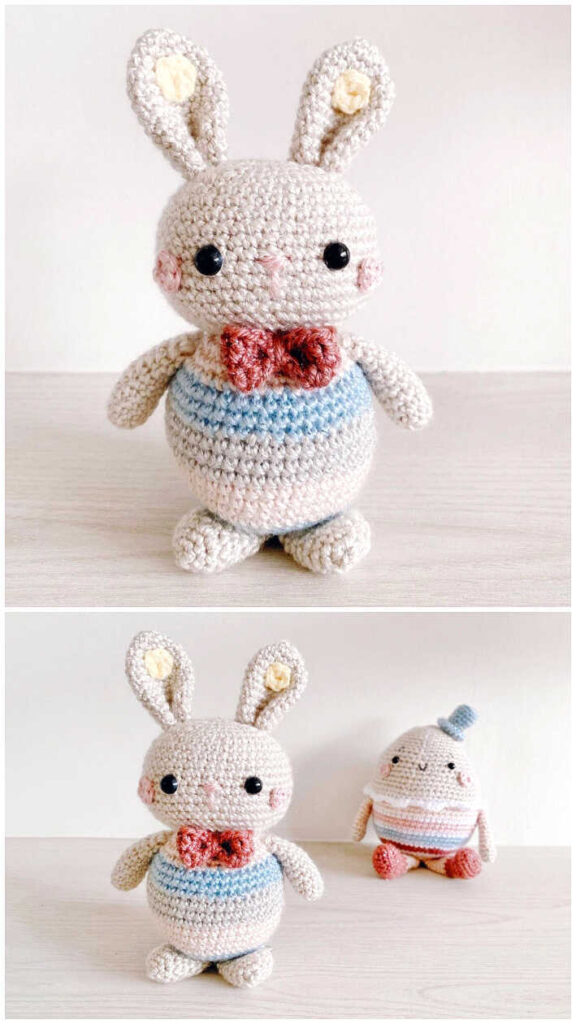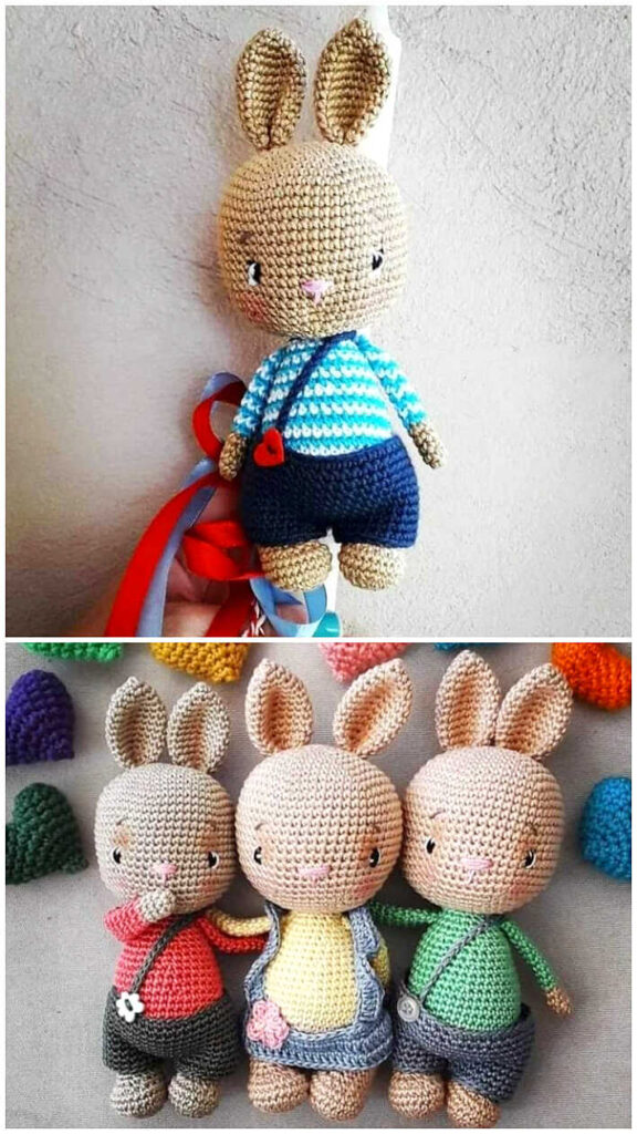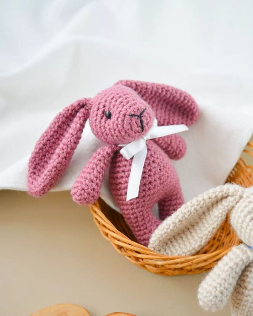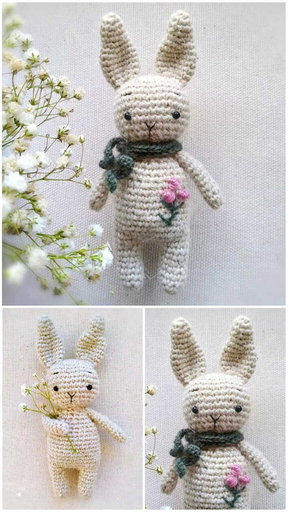 One of the free AMIGURUMI WORLDS crochet patterns we will share today is the AMIGURUMI WORLDS bunny, whose photos and design belong to @vitrinatoys. You can learn how to crochet these bunny using the free amigurumi pattern. With this crochet pattern you will get a bunny about 10 cm (3.9″) high (the dimension depends on yarn size and crochet hook size). Thanks to @vitrinatoys for this cute bunny.