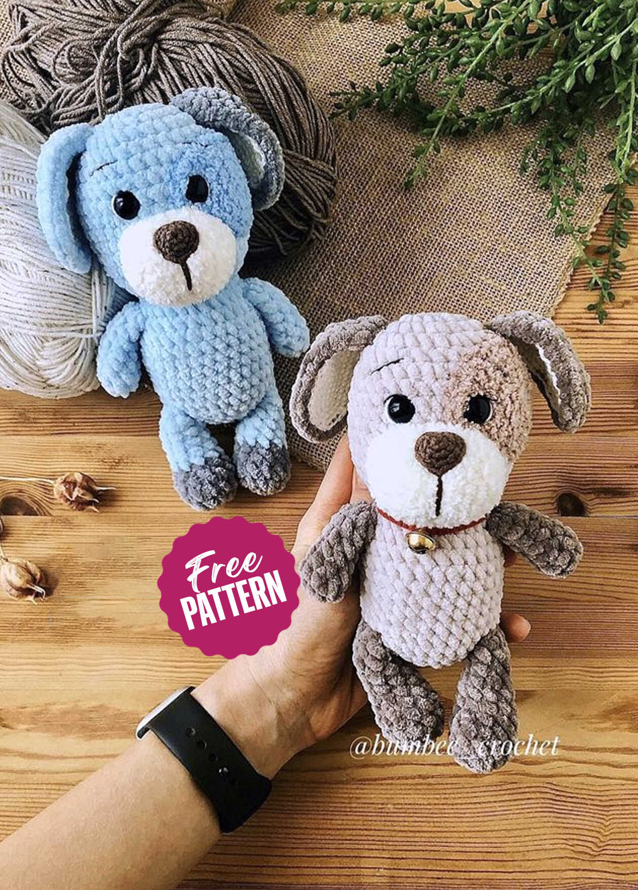 One of the free AMIGURUMI WORLDS crochet patterns we will share today is the AMIGURUMI WORLDS dog, whose photos and design belong to (@bumbee_crochet). You can learn how to crochet these dog using the free amigurumi pattern. Thanks to dear Kristina for this cute plush dog. Rex the dog amigurumi is about 19 cm (7.4″) tall.
