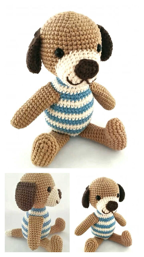 Head and body of amigurumi dog are crocheted as one piece.