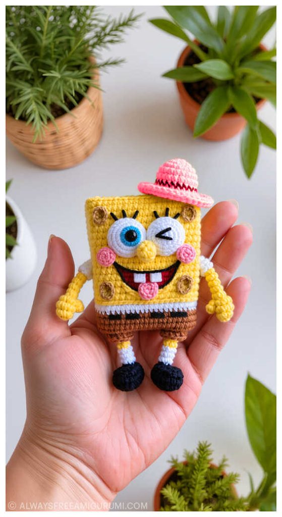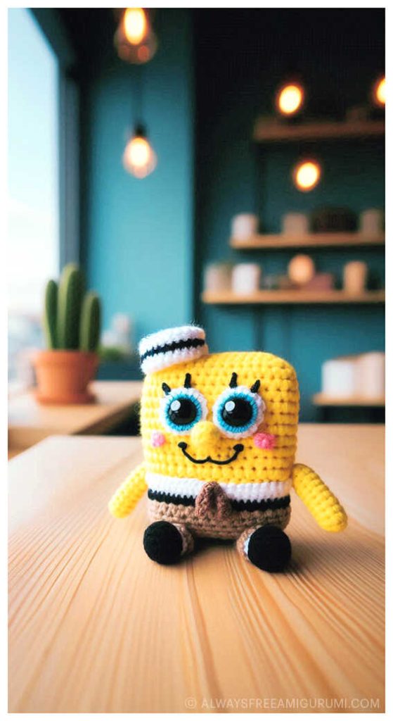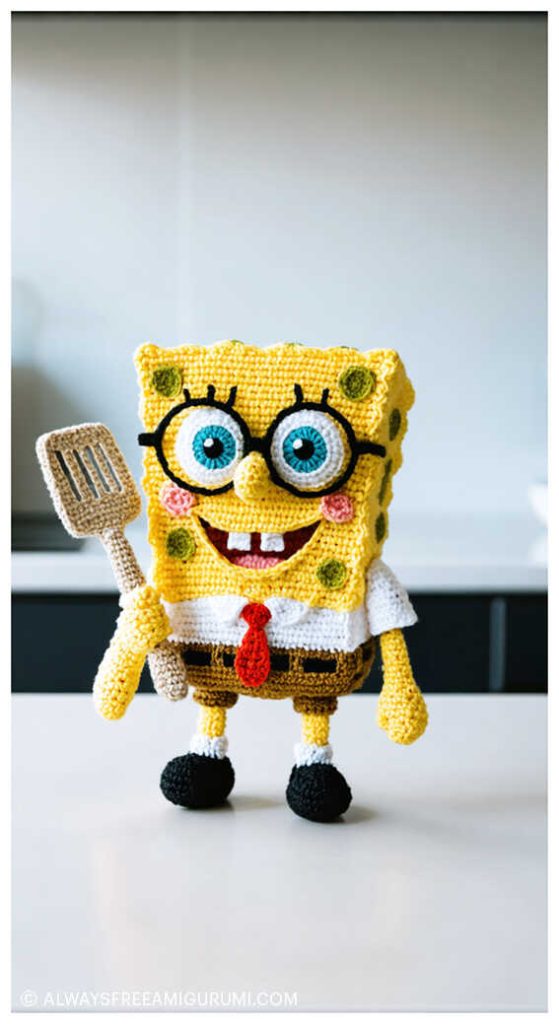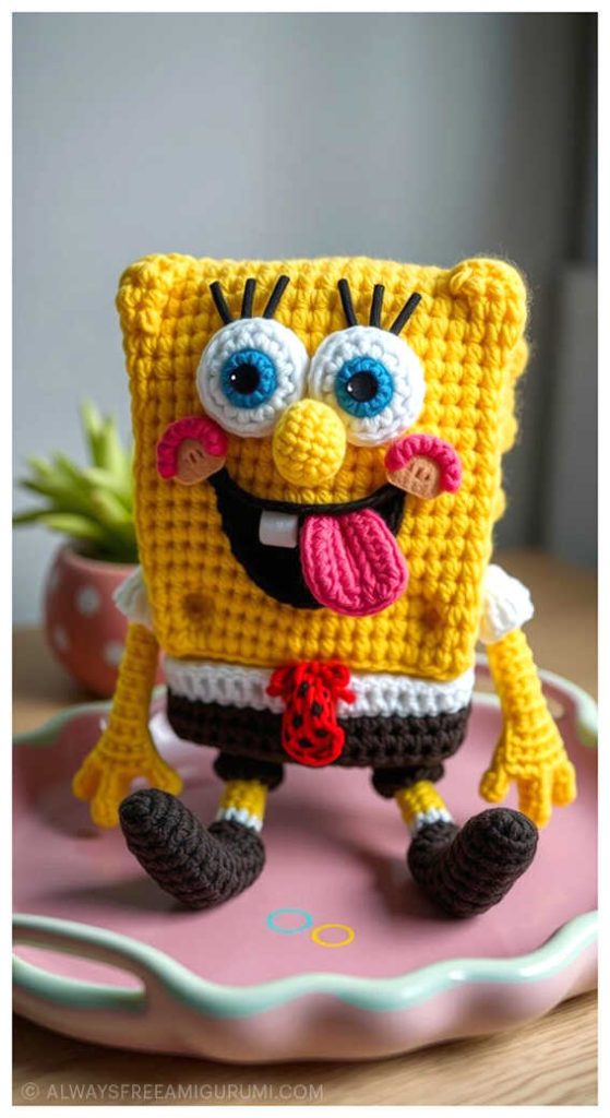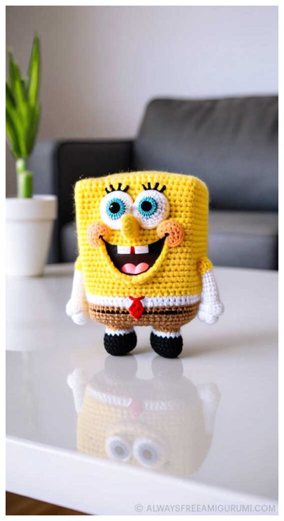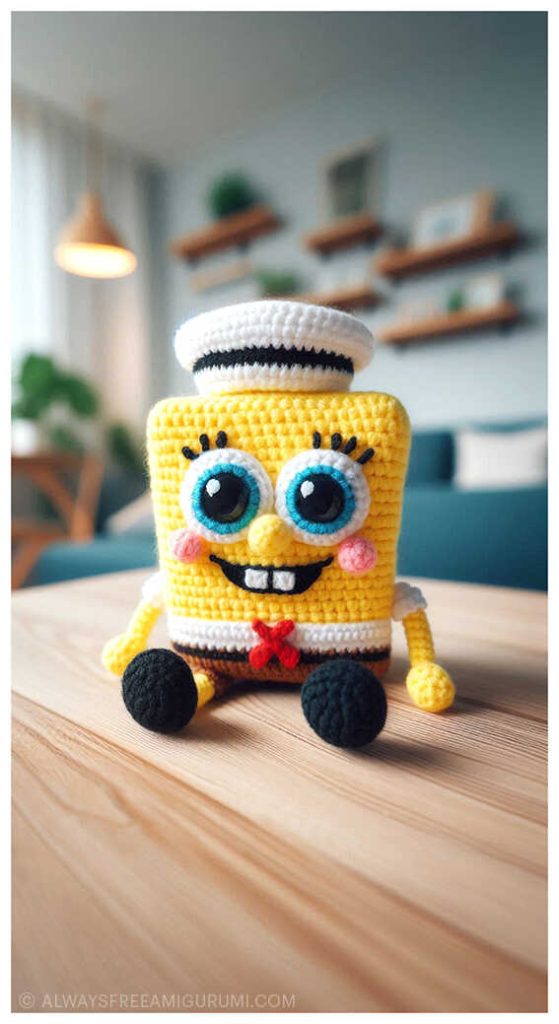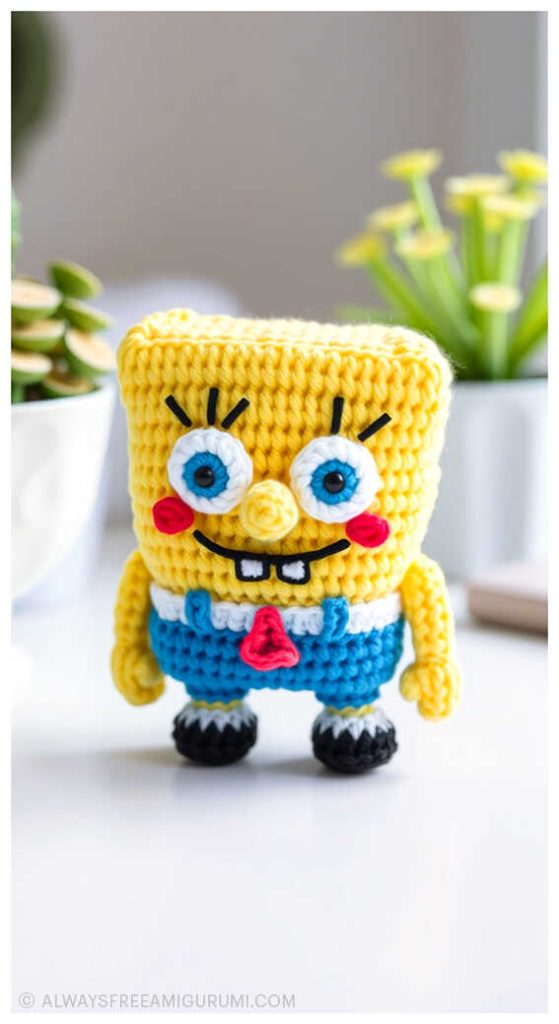 Once completed, this adorable SpongeBob is not only a fun project but also a charming addition to your collection or a perfect gift for friends and family. Thanks again to Yuliya Knitting for this fantastic design, which opens the door to countless creative amigurumi ideas! Whether you display him on a shelf or give him as a handmade treasure, this pattern is an excellent opportunity to practice your crochet skills while making a joyful character come to life…