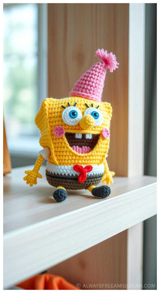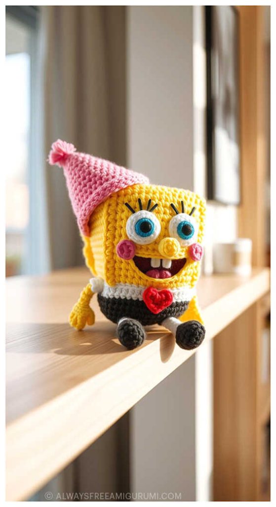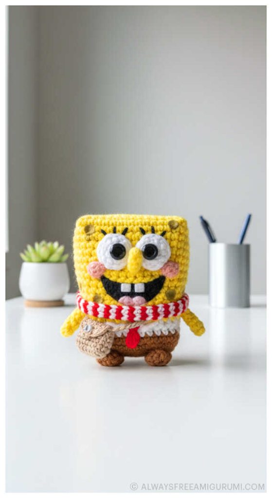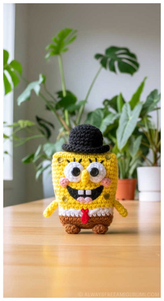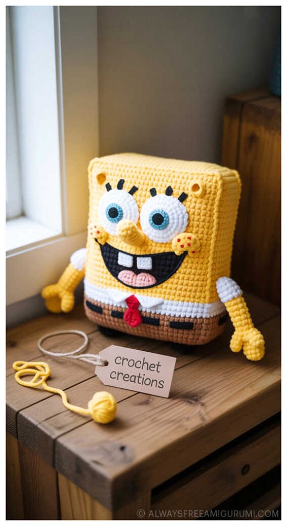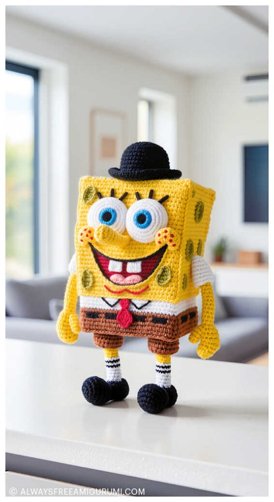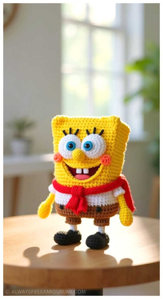 Once completed, this adorable SpongeBob is not only a fun project but also a charming addition to your collection or a perfect gift for friends and family. Thanks again to Yuliya Knitting for this fantastic design, which opens the door to countless creative amigurumi ideas! Whether you display him on a shelf or give him as a handmade treasure, this pattern is an excellent opportunity to practice your crochet skills while making a joyful character come to life…