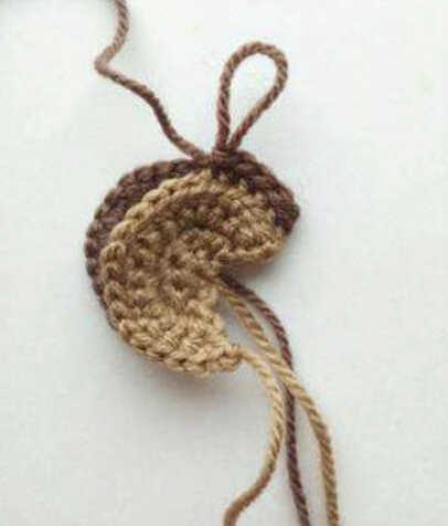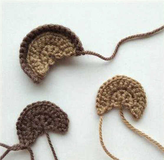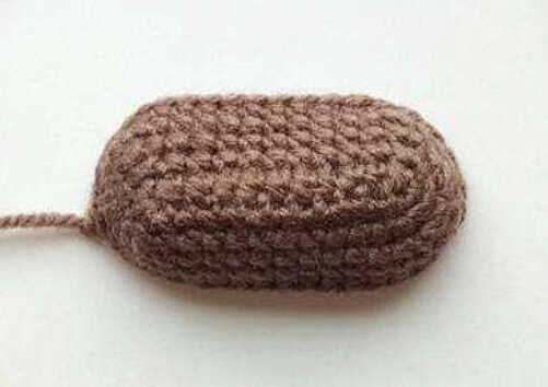Fill in half, fold in half and knit 6 sc. fasten and cut the thread. The legs consist of a bottom and an upper part