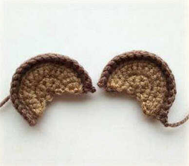 • Sew on the ears from rows 7 to 16.